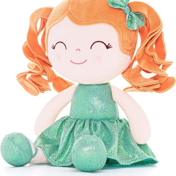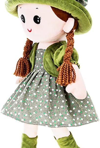 Plush Baby Doll Girl with Clothes, 13.7 Plush Stuffed Princess Dress Up Doll Plush Toy with Hat Princess Skirt, Cute Sweetheart Rag Doll Cozy Cuddle Soft Baby Girl Doll for Kids Babies Green