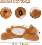 - Unique Design: Our brown bear weighted plush animal is 23.6 in long, 5 lbs in weight. Embroidered eyes, a large nose and lovely ears make the bear toy looks even cute and safe. It will become your best friend to accompany your studying, watching TV and adventures.