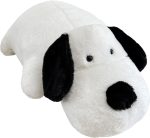 -Soft Puppy Plush Pillow, 23.6in/60cm Cute Stuffed Animals Toy, White and Black Dog Hugging Pillow, Gift for Kids and Friends
